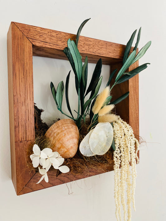 Tableau Vegetal Stabilise Cadre Bois 3D 'Méditerranée'