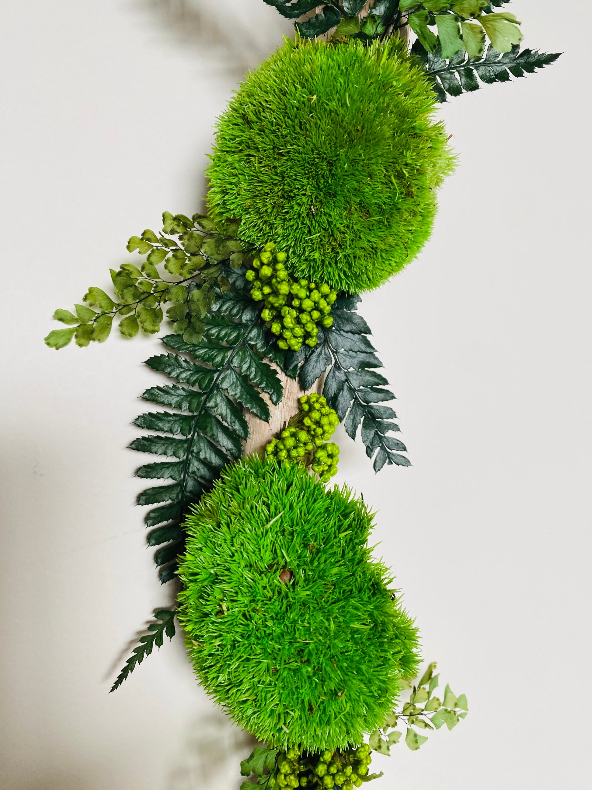Composition : bois flotté naturel, 4 variétés de plantes naturelles stabilisées : fougères, mousse boule, capillaire, diosmi